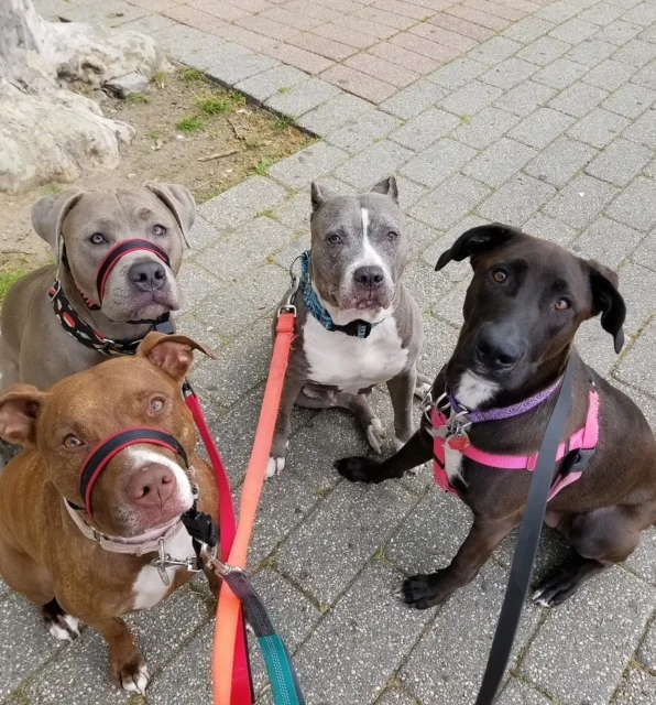 It’s not for “correcting”. You can not and should not "correct" on a halti the way someone would on something like a prong collar. A sharp jerk to their face is, well, a sharp jerk to the face, so don’t do that. Try to avoid sharp movements, and instead focus on consistency. The dog will feel pressure if the dog is pulling. We hold the leash up toward the neck for a sit, and straight down for a down. Both have to be taught—we use both verbal commands and hand signals as well when teaching it.